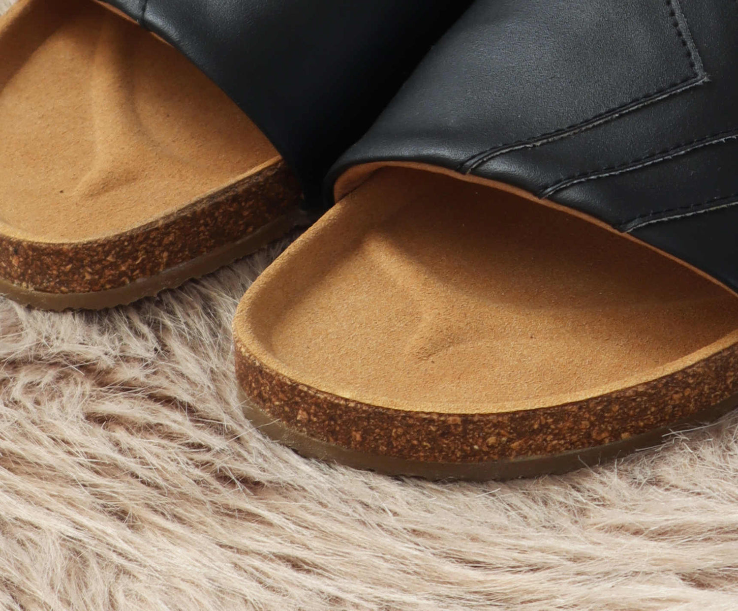 Gut für deinen Style, gut für deine Füße und gut für dein Gewissen: Die zertifiziert veganen Sandalen von Fünve sehen nicht nur lässig aus, sondern werden von Hand in portugiesischen Traditionsbetrieben gefertigt. Außerdem verwöhnen sie deinen Fuß mit butterweichem Fußbett und einem anschiegsamen gepolsterten Riemen. Die Korksohle ist extrem leicht, isoliert und dämpft jeden Schritt. Das alles macht Fünve Slides so bequem und zu deinen idealen 24/7 Begleitern!