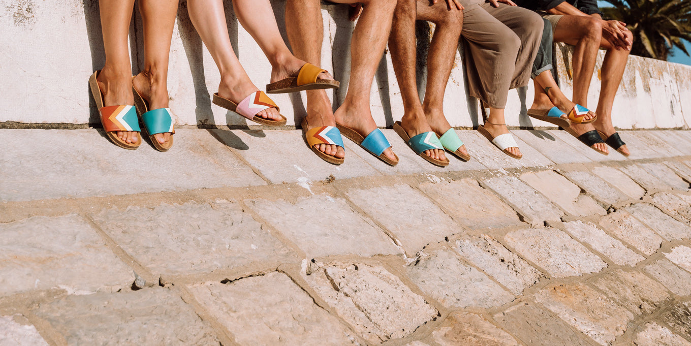 Comfy slides in vibrant retro colors. Ethically produced in Portugal. Endless summer...